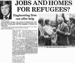 Sevenoaks Chronicle, October 28 1978 Vietnamese refugees who arrived in England last weekend after they fled from their homeland have been welcomed with open arms in Sevenoaks with the possibility of houses and employment.