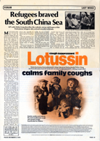 Left is an article by Helen Long for the 'Forum Last Word' column in Pulse Magazine. It contains a sketchy account some of the reactions of refugees on their visit to Brasted and a few details on their medical/psychological condition during the escape from Vietnam, as recounted by young doctors she met in London at a dinner party arranged by Christopher Long and Sarah Davidson at Napier Place, Kensington, in November 1978.