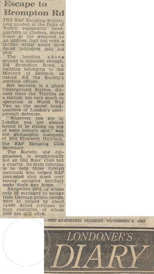 19831108 RAF ESCAPING SOCIETY BROMPTON ROAD TUBE STATION ELIZABETH HARRISON ES.jpg