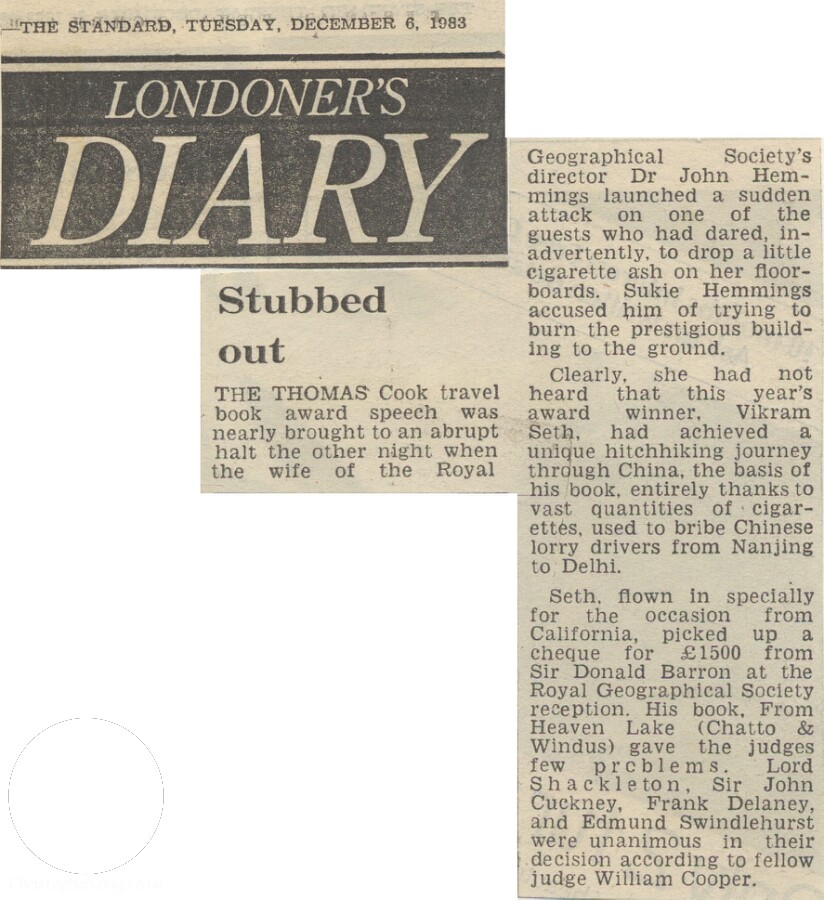 ![19831206 DR JOHN HEMMINGS VIKRAM SETH ROYAL GEOGRAPHICAL SOCIETY ES]()