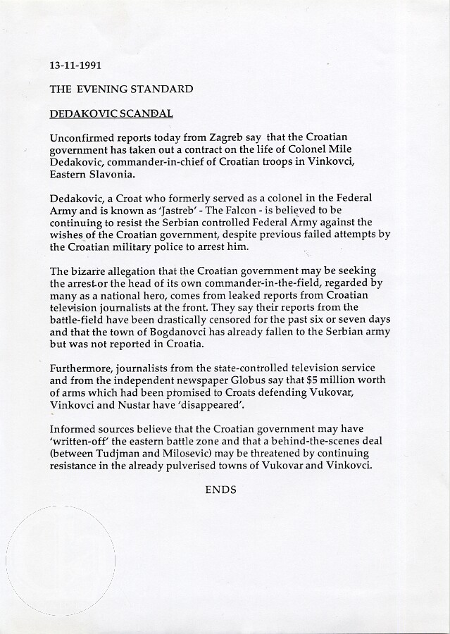![19911113 EVENING STANDARD DUBROVNIK a 1-1 ES]()
