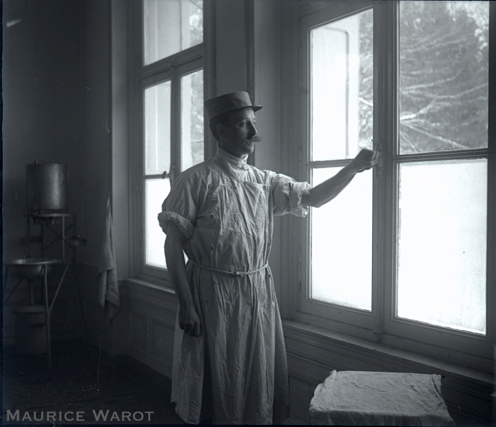 Malheureusement, nous ne savons pas grand-chose de la période militaire du Docteur WAROT. Ces images démotrent seulement qu'il a certainement servi en arrière des lignes en hôpital de campagne, dans les zones de la Marne et de Verdun. Selon les annotations écrites sur les boîtes, il prennait des photos à Chambry, Villers-Cotterels, Vassens, Sept-Saulx, Pargny-sur-Saulx, le Château de Monthainon, Crépy, Couvron, Roye, Valleul(?) and Hautebraye.