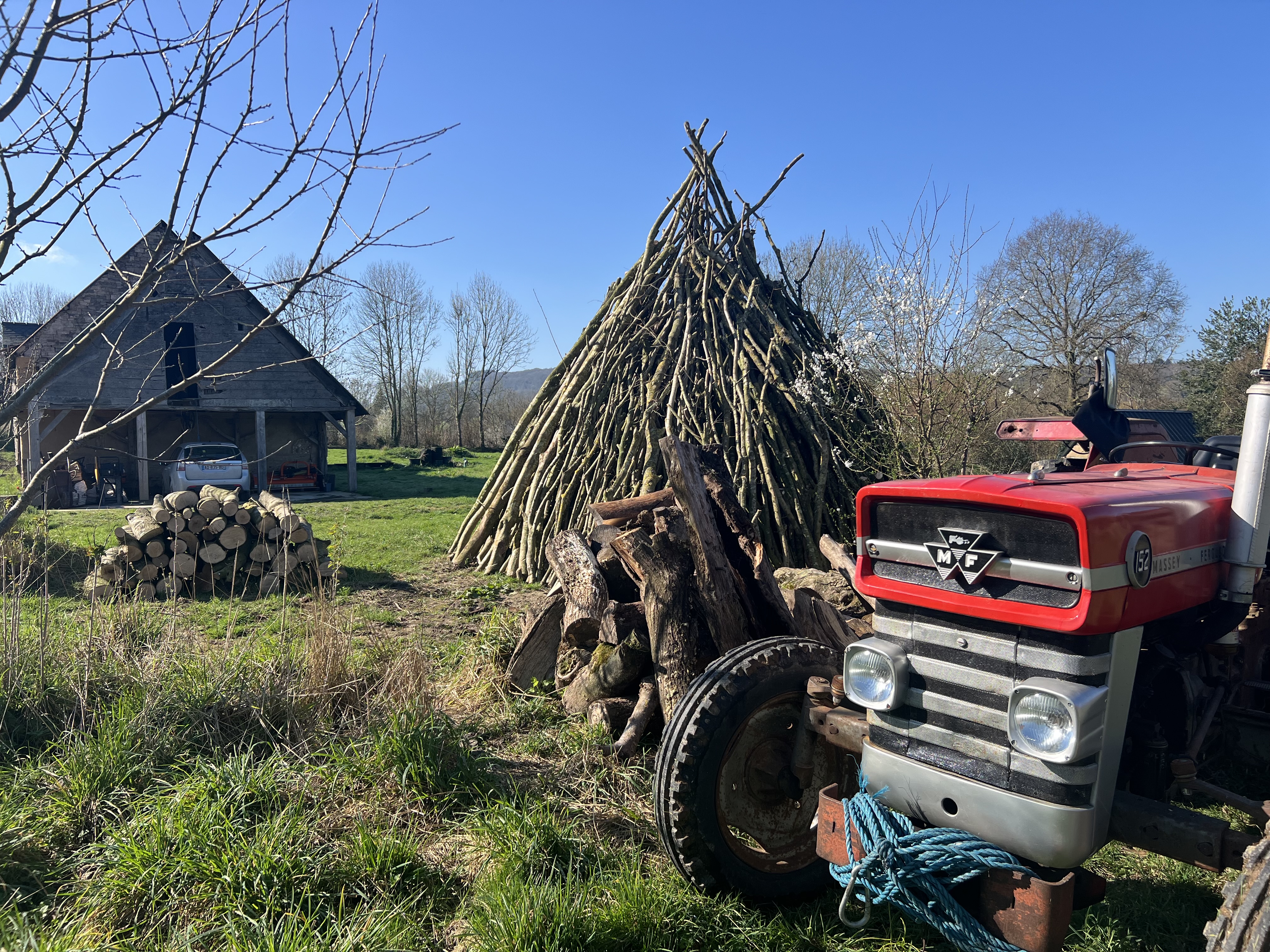 A coppiced hedge is just a long and thin version of a coppiced wood. In a coppiced woodland you selectively cut only mature timber from coppice species such as ash, hazel and chestnut which naturally regrow from the cut stump. When coppicing a wood or a hedge, you cut only a small sustainable proportion of the timber each year, which provides immature growth with additional space and light to grow on for selective cropping in later years. In this way a coppiced hedge is kept young, vigorous and productive while still performing its function as a barrier. In England, coppiced woods are relatively common and hedge-laying is widespread, but coppiced hedges are almost unknown. Here in Normandy the art of laying hedges and replanting them has been lost but some coppiced hedges survive, although sadly Norman hedges are increasingly processed 'all-in-one-go' along their length, as in England, and bonfires are needed to burn great piles of immature and wasted young growth!