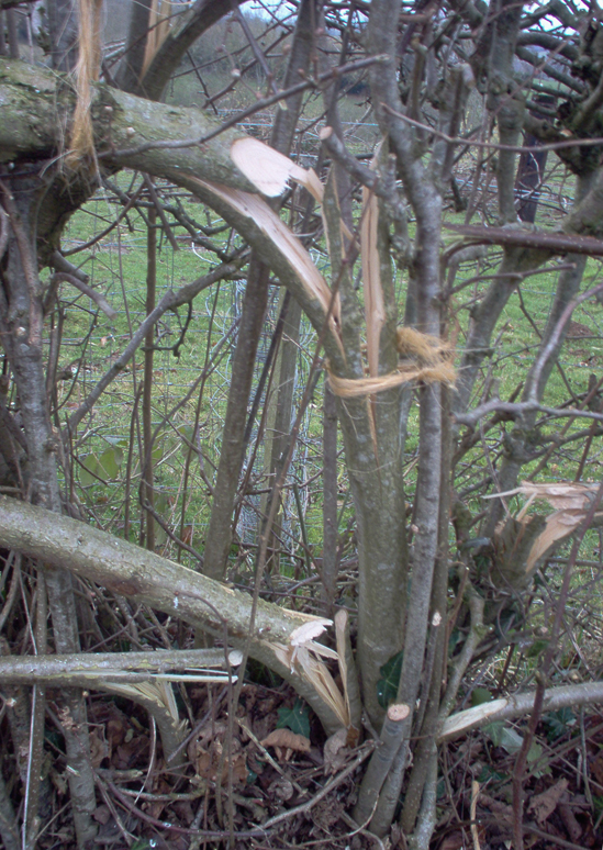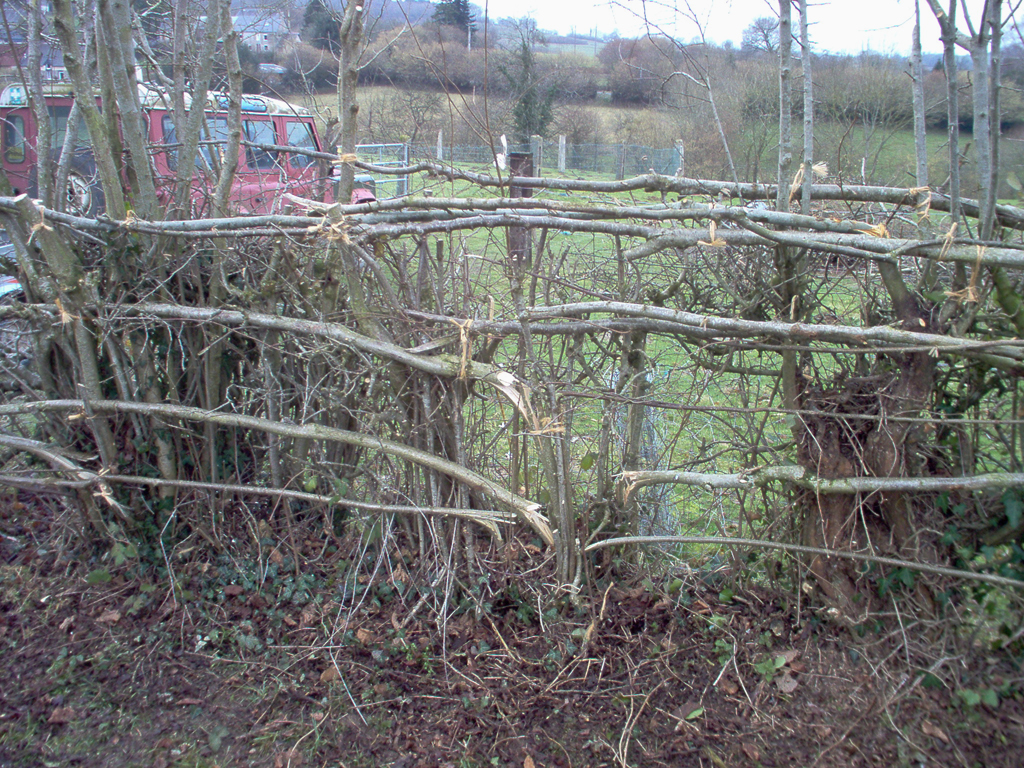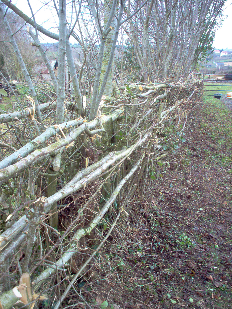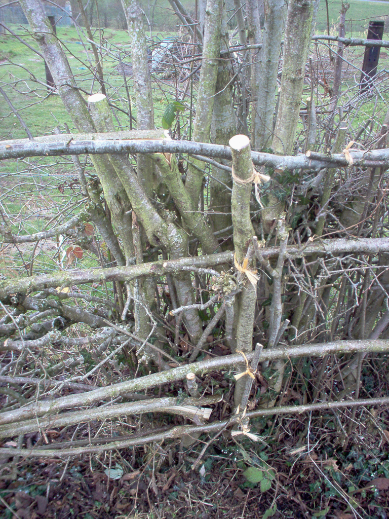 The principal behind layering a 'laid' hedge is that when you 'wound' certain species, nature responds by exaggerated regeneration.
