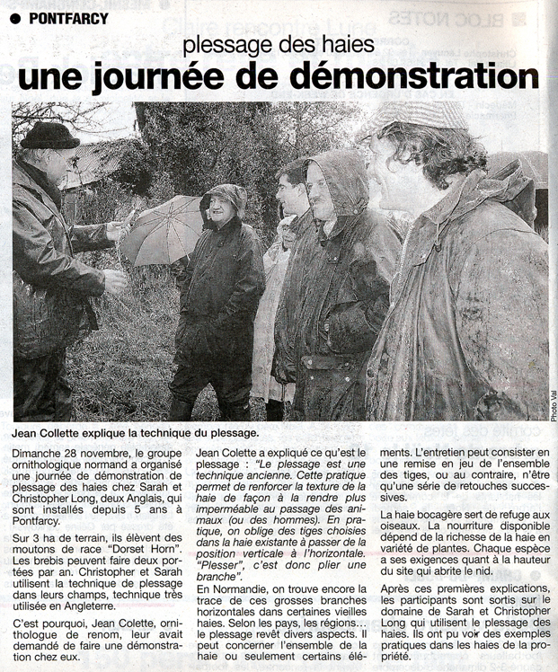 In Normandy, coppicing hedges is common practice but the art of laying them has been lost. In England on the other hand, hedge-laying is widespread but the practice of coppicing hedges has been largely abandoned.