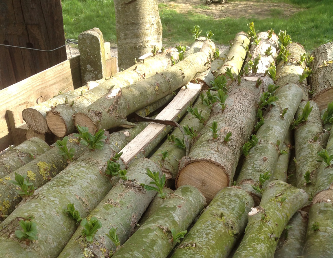 In April we found the logs sprouting, as is often the case with coppice woods which are cut when the sap has started rising.