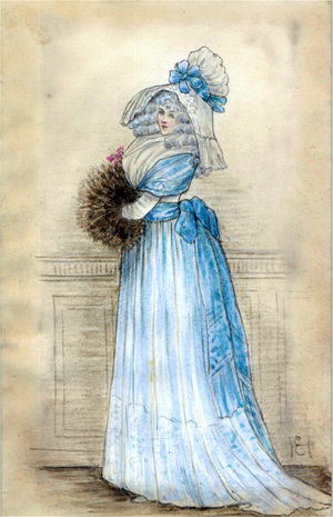 In 1987 Lord Hood examined these four water-colours in the 1980s and was uncertain whether this is another portrait of Georgiana, Duchess of Devonshire. He thought the Chatsworth collection might shed light on the origin of this one. It is possible that the subject here is the same as that below.