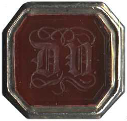 Right: Dimitri Vlasto's silver and cornelian seal with the die-stamp 'flipped' to reveal 'DV' in the author's possession.