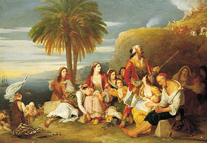 Bands of other Turks loot and harass the Chian survivors. Again, thousands of Chians flee to the island of Psara where, fifty years earlier, 20,000 Chians fled to escape the Turkish invasion. Again Psara provides a welcoming sanctuary.