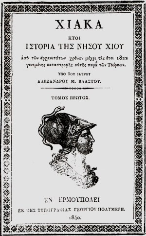 Having witnessed the massacres as an eight year-old, his family fled with him to Livorno where he studies medicine, becomes an eminent writer of medical works and the author of Xhiaka A History of the Island of Chios AD 70-1822.