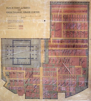 TITLE="A plan of the Greek Orthodox plot at West Nowood Cemetery, founded by London Chios diaspora community in 1842 and where most of them are buried.">