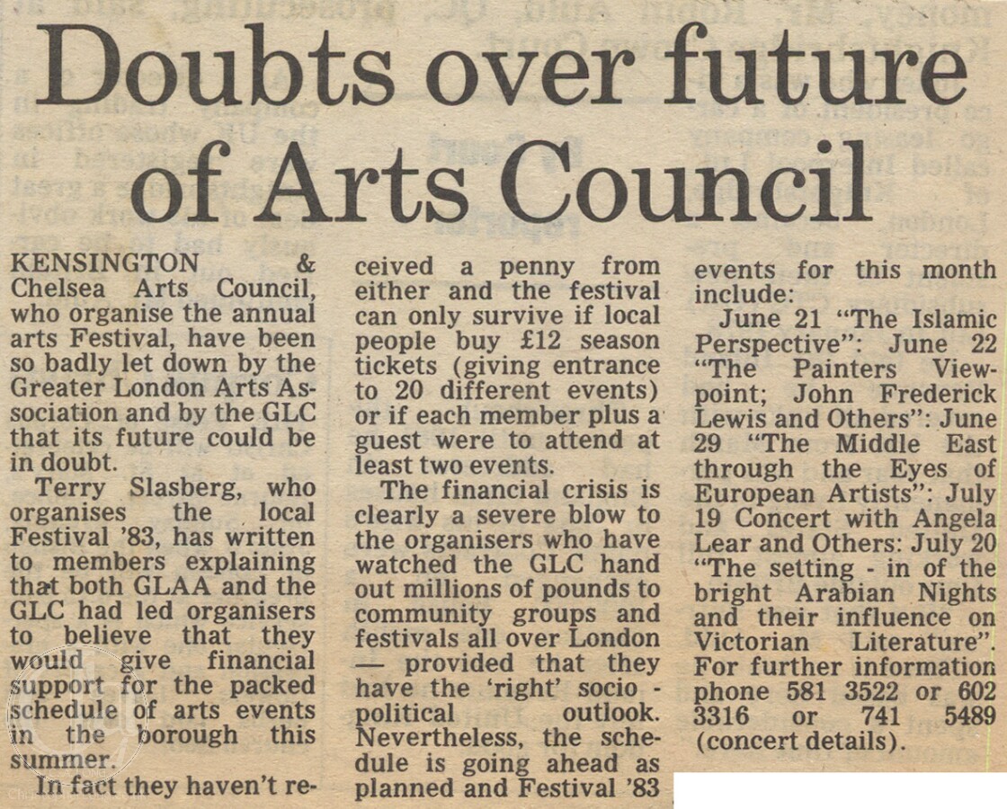![19830603 KENSINGTON CHELSEA ARTS COUNCIL FUTURE UNCERTAIN CN]()
