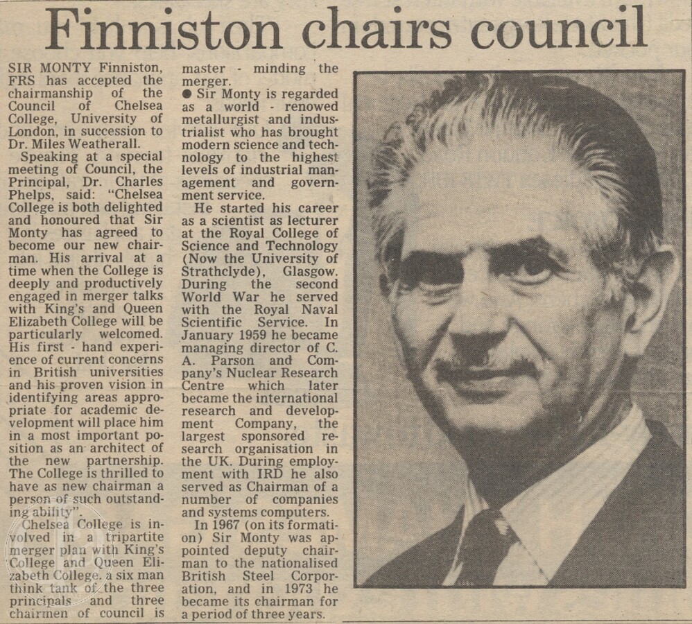 ![19830610 CHELSEA COLLEGE SIR MONTY FINNISTON FRS CN]()