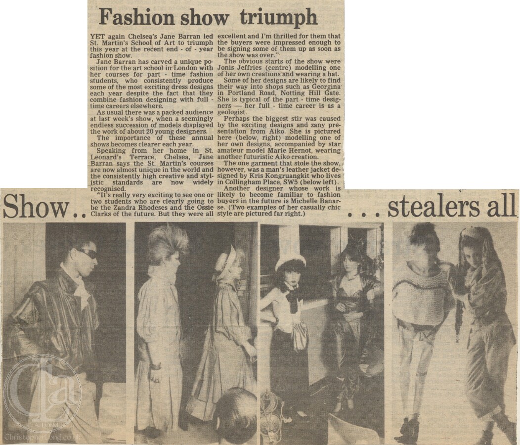 ![19830617 ST MARTINS SCHOOL OF ART FASHION SHOW JANE LADY BARRAN MARIE HERNOT AIKO Friends of CAL CN]()