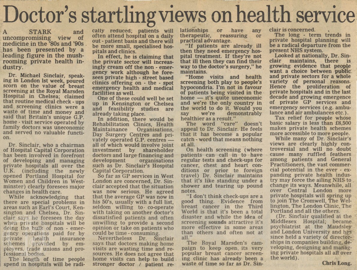 ![19830715 DR MICHAEL SINCLAIR CONTROVERSIAL VIEWS ON THE NHS CN]()