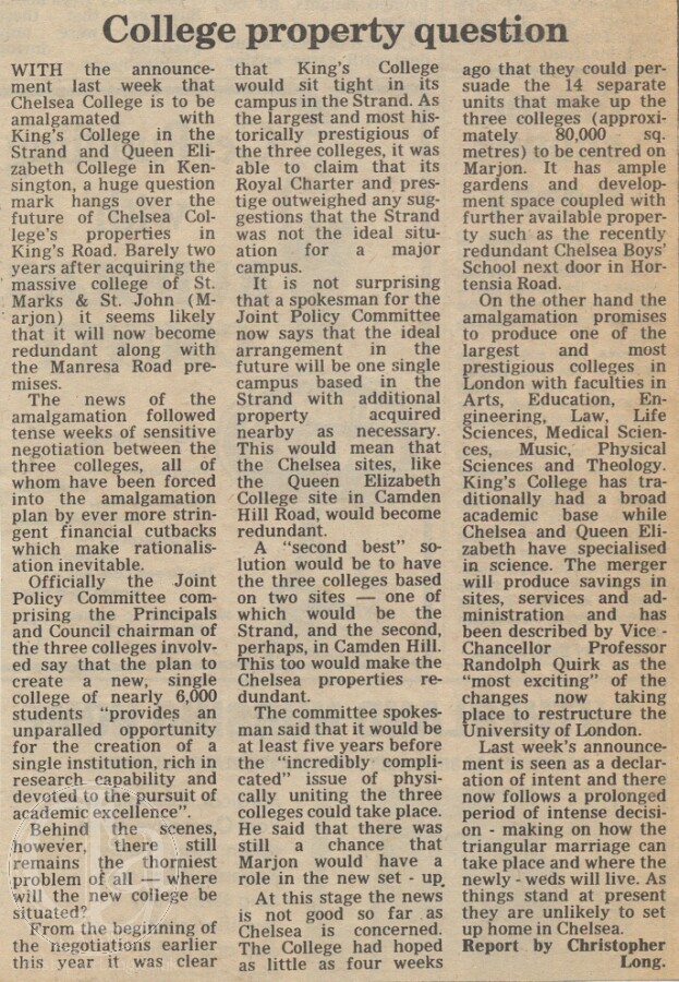 ![19830727 CHELSEA COLLEGE FUTURE IN DOUBT CN]()