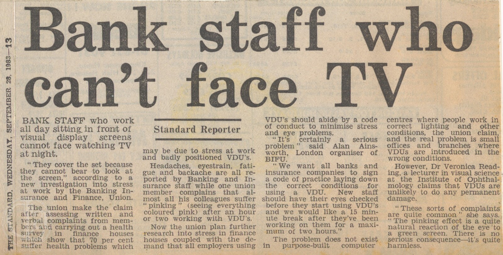 ![19830928 BANK STAFF CLAIM VDU DIFFICULTIES ES]()