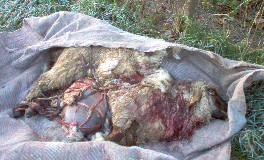 I am deliberately publishing a rather small image of the ewe killed in this attack. I suggest you do not click to see the enlargement if you are squeamish by nature.