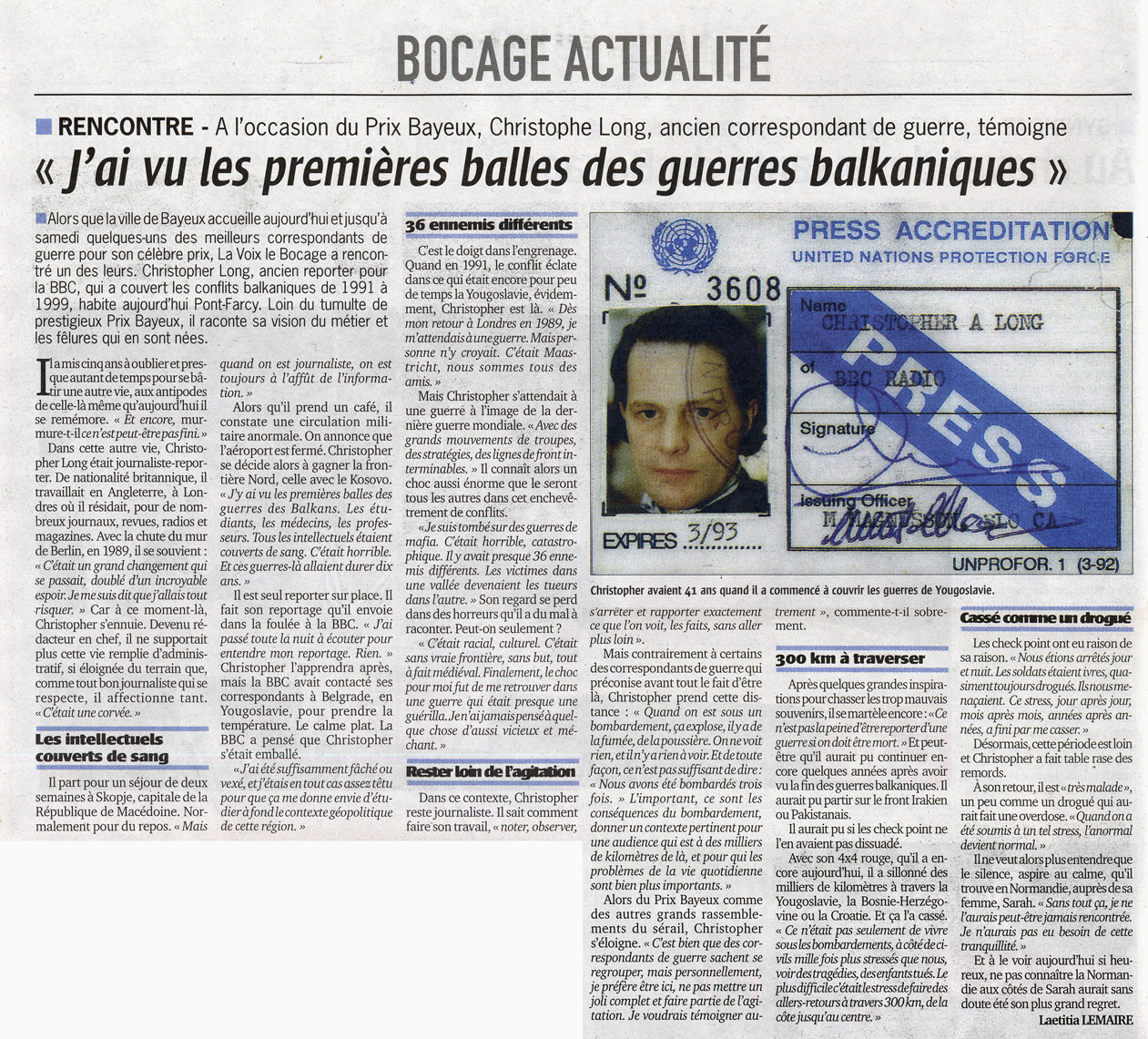As Bayeux welcomes some of our best war correspondents to its famous award ceremony today until Saturday La Voix le Bocage meets another of them: former war correspodent for the BBC Christopher Long, who covered the Balkan conflicts from 1991 to 1999, and who lives in Pont-Farcy. Far from the prestigious Prix Bayeux, he gives his views on the job and the perils they provoke.
